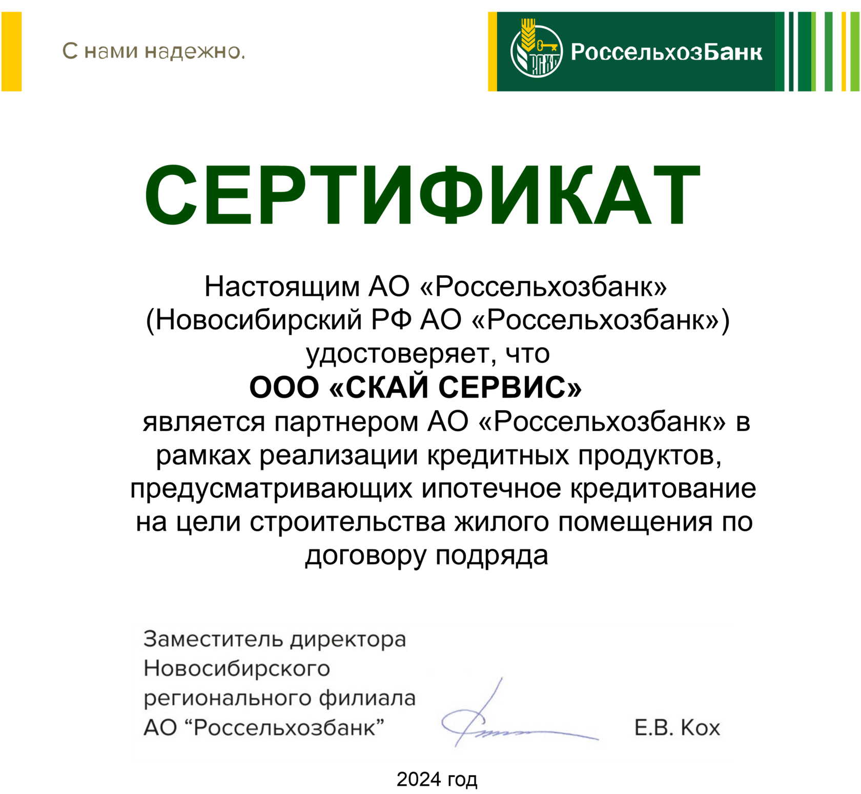 ООО «СКАЙ СЕРВИС» застройщик ЖК "КУбаньSKY" с радостью сообщает о сотрудничестве с АО «Россельхозбанк» (Новосибирский филиал).